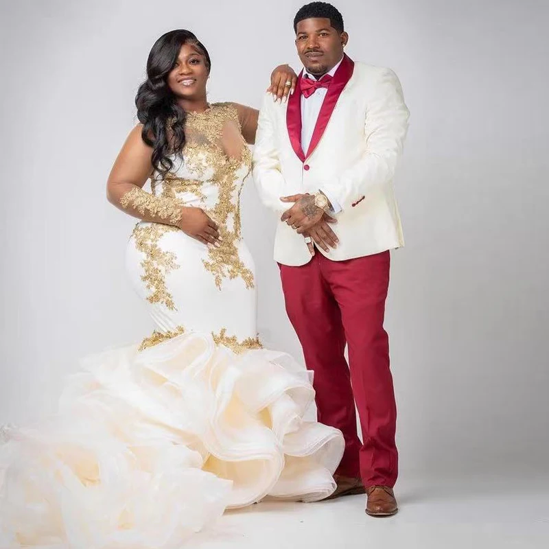 This gold dress for wedding is made from high-quality organza and polyester, ensuring both durability and comfort. Its mermaid silhouette enhances your figure, while the O-neck and long sleeves add a touch of sophistication. Whether for a wedding ceremony or a grand reception, this dress offers a timeless, luxurious appeal that will leave a lasting impression.