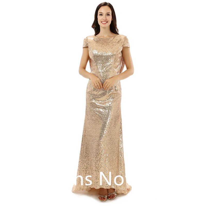 The Sparkle Gold Sequins Mermaid Mother of the Bride Dress is the perfect combination of elegance, sophistication, and comfort. Designed with a mermaid silhouette, this dress flatters your curves while offering a sleek and stunning appearance. The sparkling gold sequins and lace fabric add a glamorous touch, making it ideal for weddings or formal events. With its low back and cap sleeves, this dress gives a modern twist to a classic look, making it perfect for the mother of the bride who wants to shine on the special day.